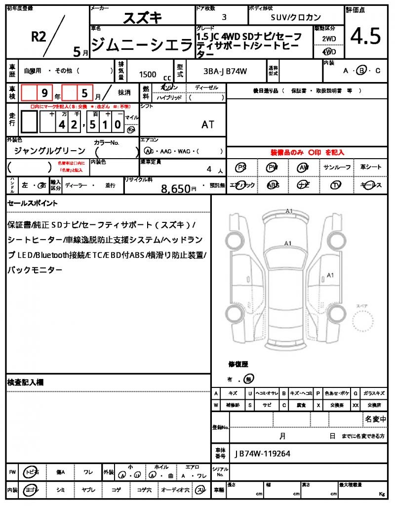 | VIN/Serial No. | JB74W-119264 |