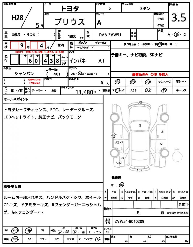 | Model code | DAA-ZVW51 |