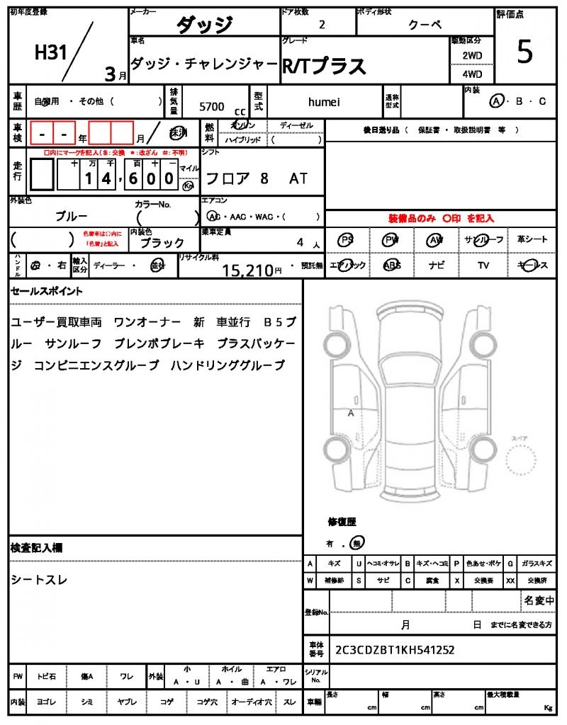 VIN/Serial No. 2C3CDZBT1KH541252