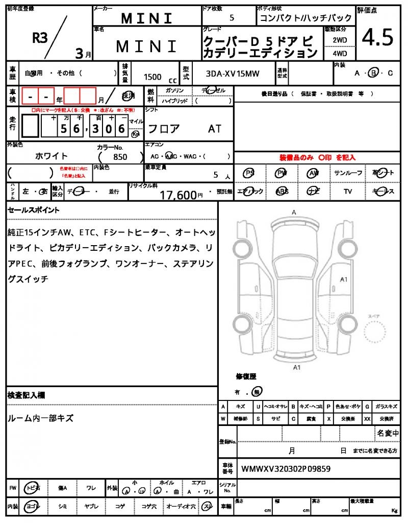 VIN/Serial No. WMWXV320302P09859