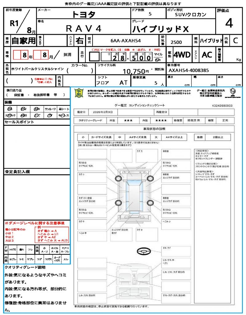 | VIN/Serial No. | AXAH54-4008385 |