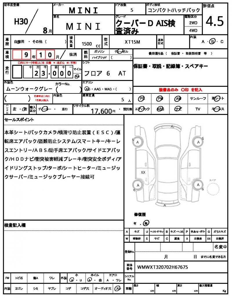 | VIN/Serial No. | WMWXT320702H67675 |