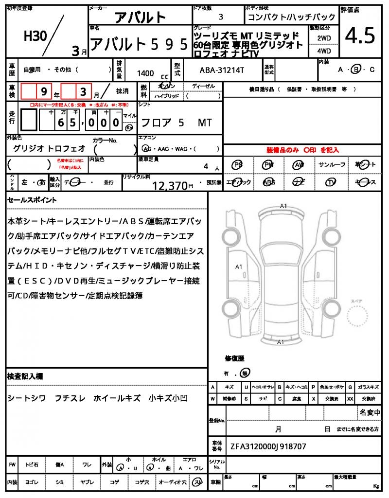| VIN/Serial No. | ZFA3120000J918707 |
