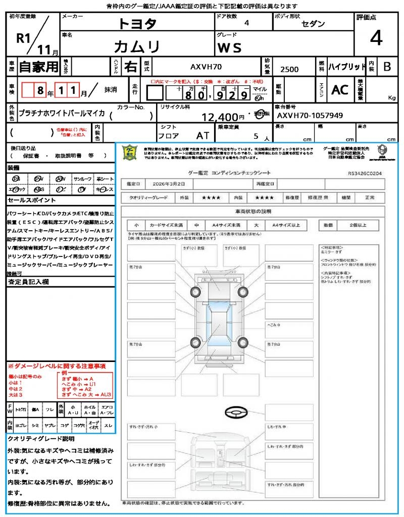 VIN/Serial No. AXVH70-1057949