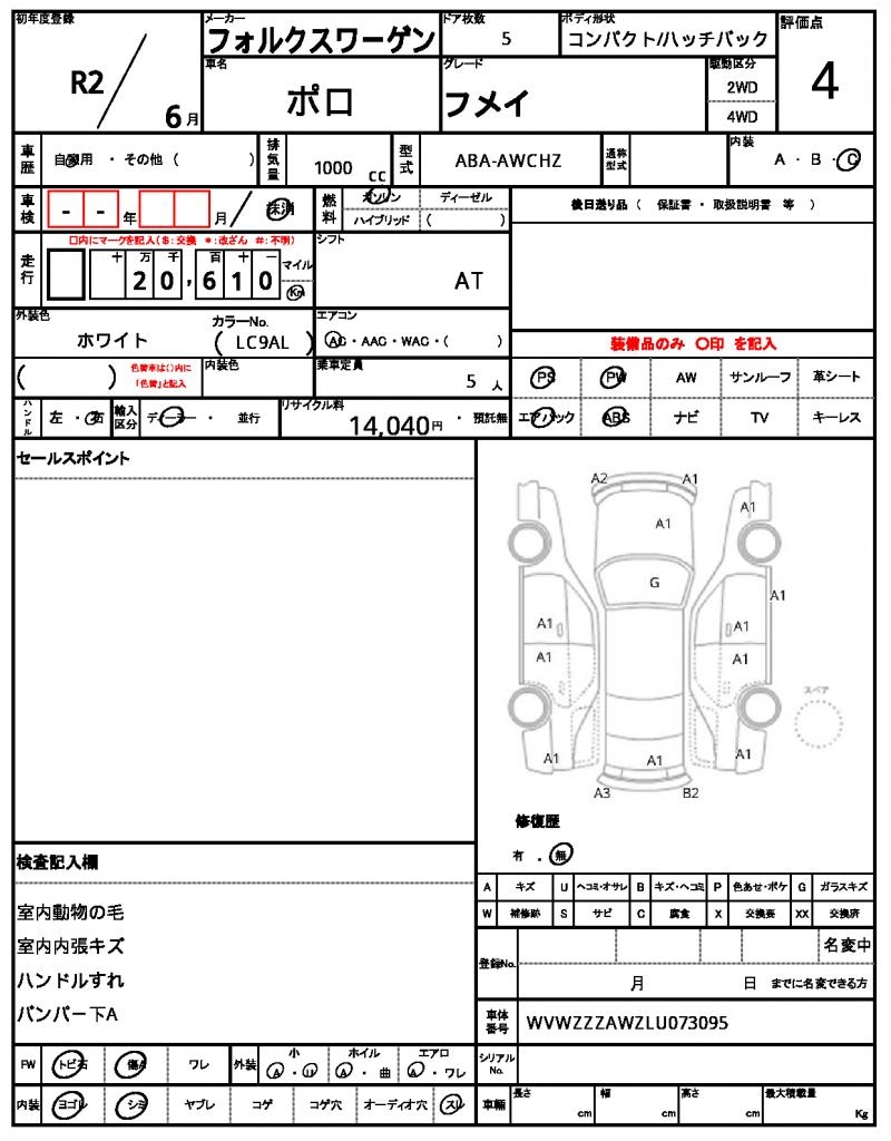 | VIN/Serial No. | WVWZZZAWZLU073095 |
