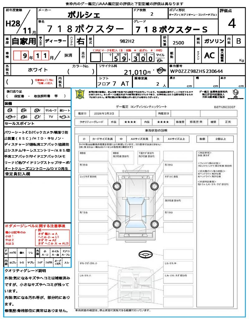 | VIN/Serial No. | WP0ZZZ98ZHS230644 |