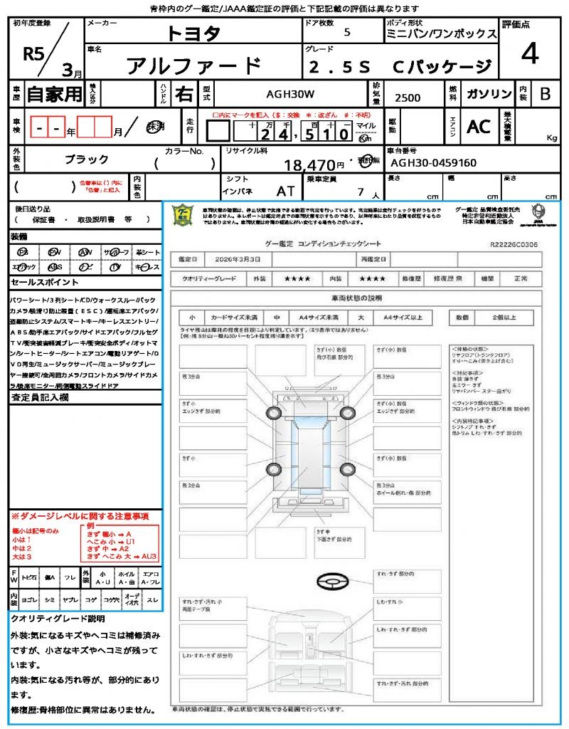 | VIN/Serial No. | AGH30-0459160 |