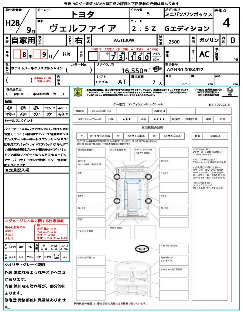 | VIN/Serial No. | AGH30-0084922 |