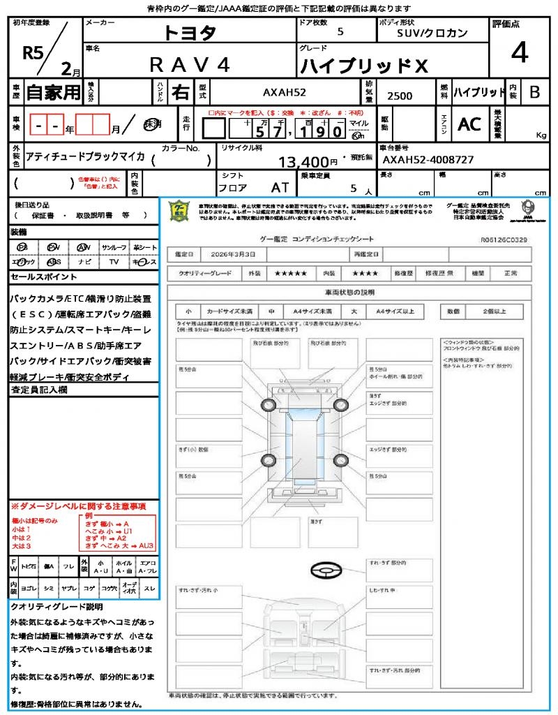 VIN/Serial No. AXAH52-4008727