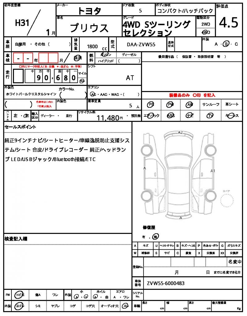 Model code DAA-ZVW55