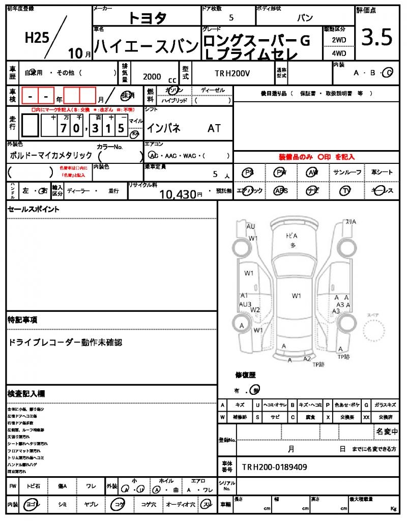 | VIN/Serial No. | TRH200-0189409 |