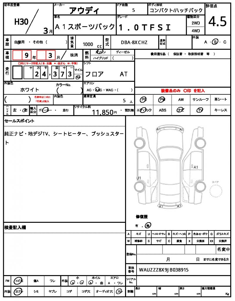 VIN/Serial No. WAUZZZ8X9JB038915