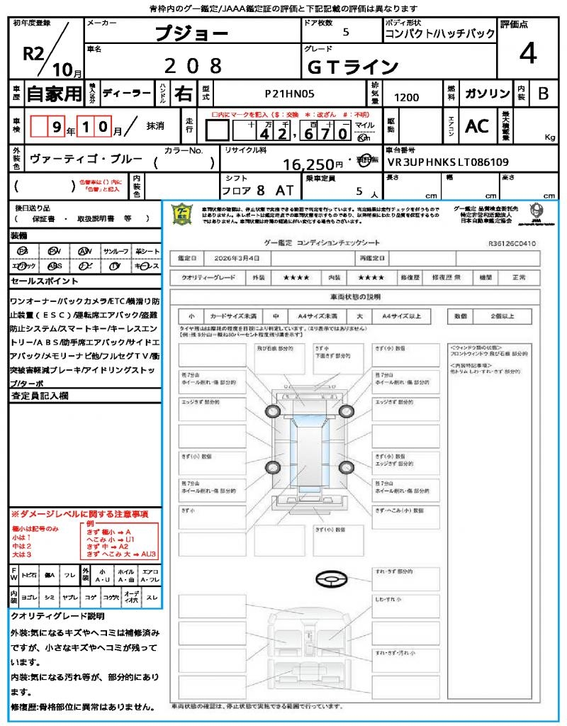 | VIN/Serial No. | VR3UPHNKSLT086109 |
