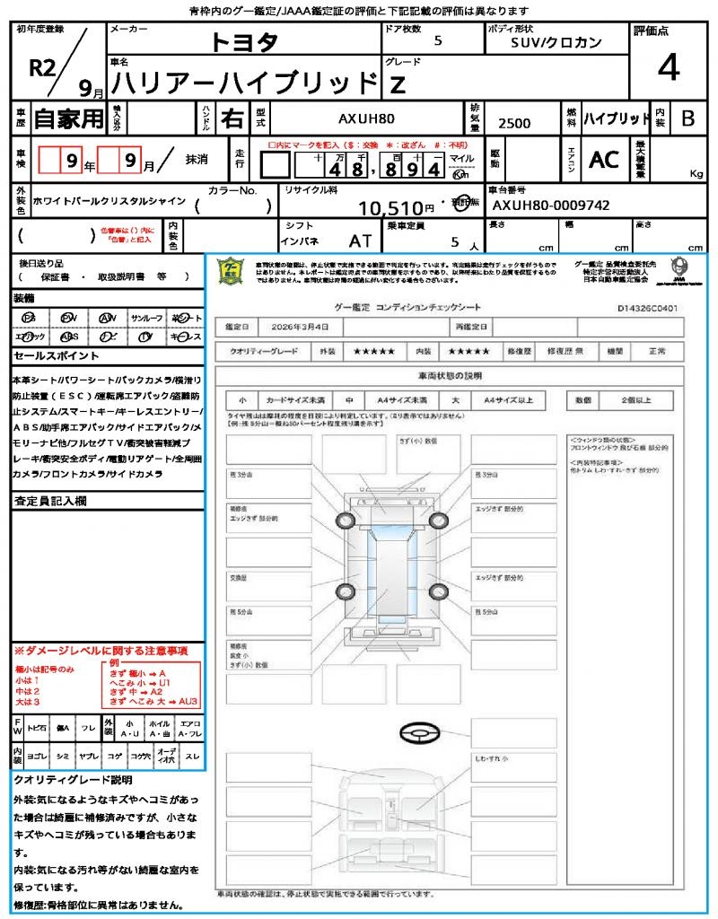 | VIN/Serial No. | AXUH80-0009742 |