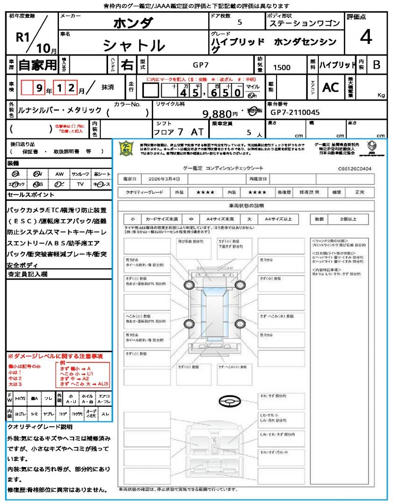 | Odometer | 45650km |