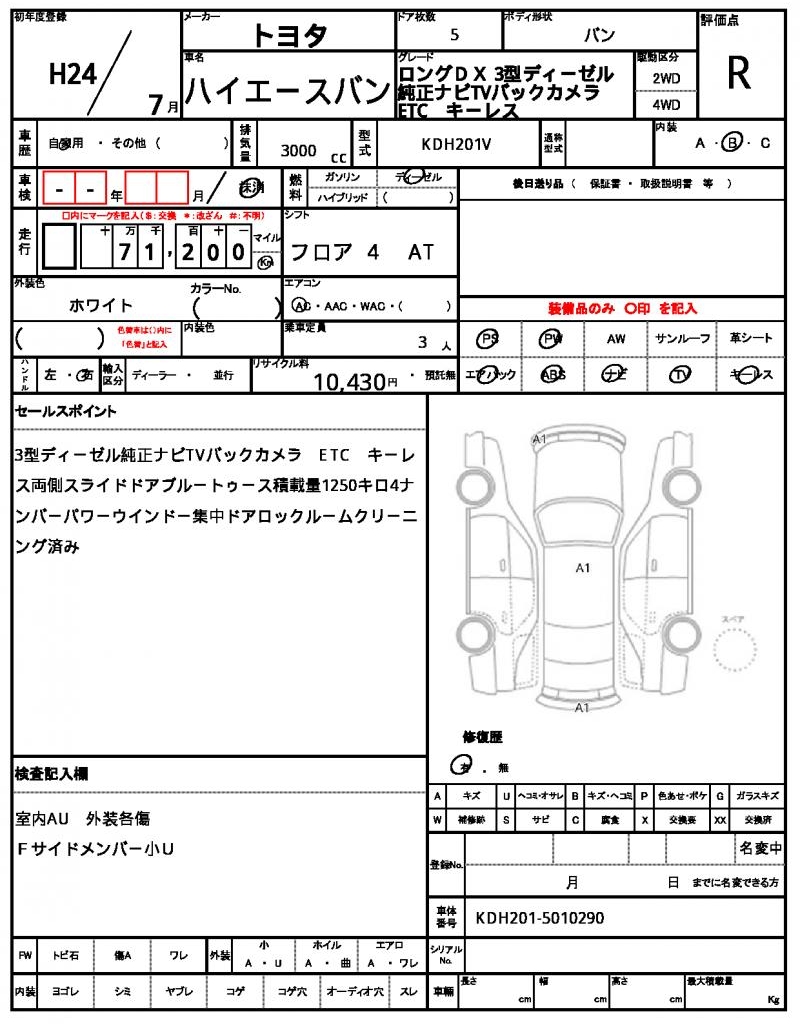 | VIN/Serial No. | KDH201-5010290 |