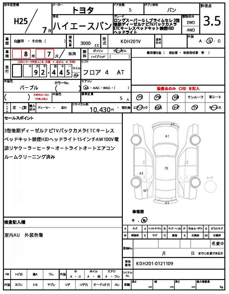 | VIN/Serial No. | KDH201-0121109 |
