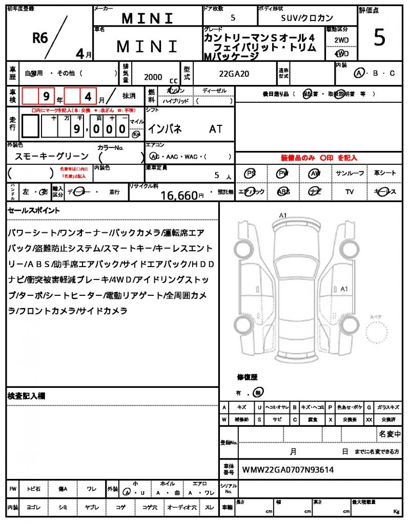 | VIN/Serial No. | WMW22GA0707N93614 |