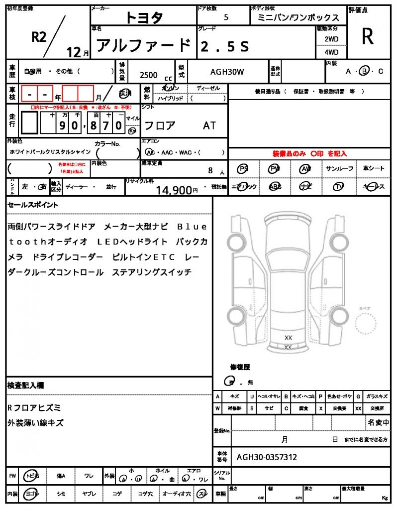VIN/Serial No. AGH30-0357312