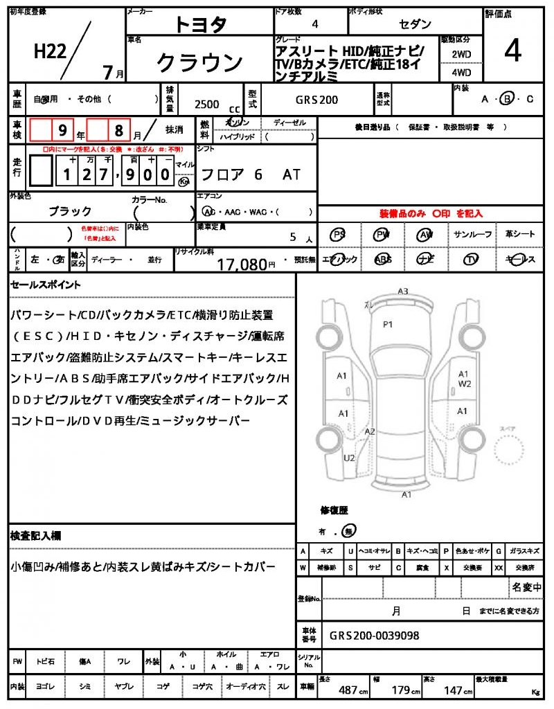 VIN/Serial No. GRS200-0039098