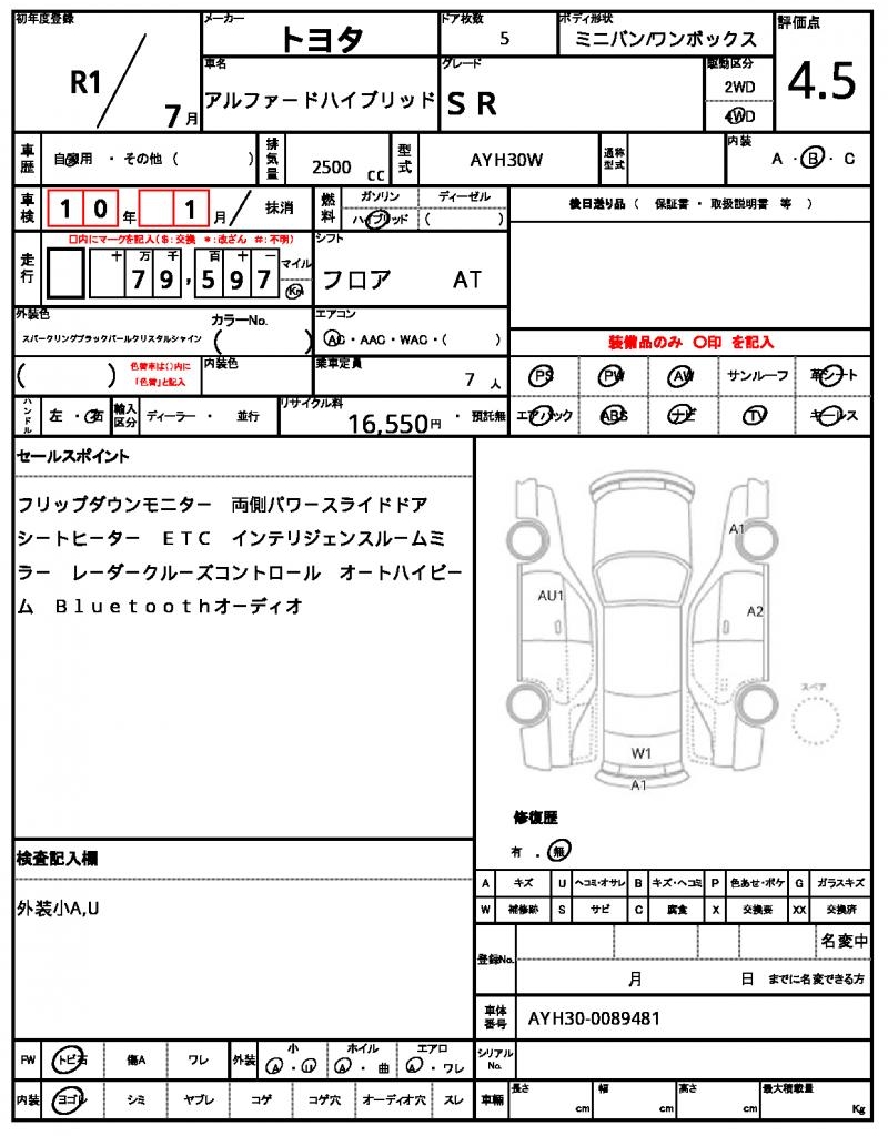 | VIN/Serial No. | AYH30-0089481 |