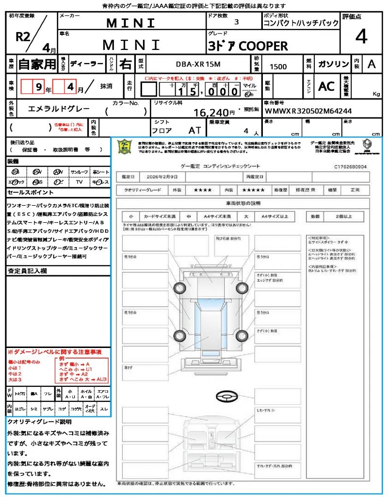 | VIN/Serial No. | WMWXR320502M64244 |