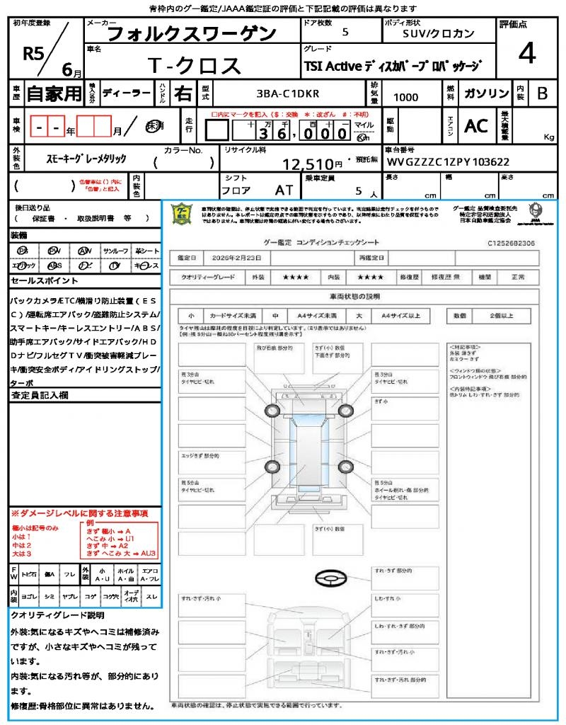 | VIN/Serial No. | WVGZZZC1ZPY103622 |