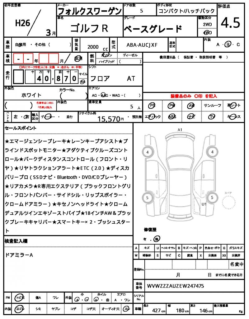 | VIN/Serial No. | WVWZZZAUZEW247475 |