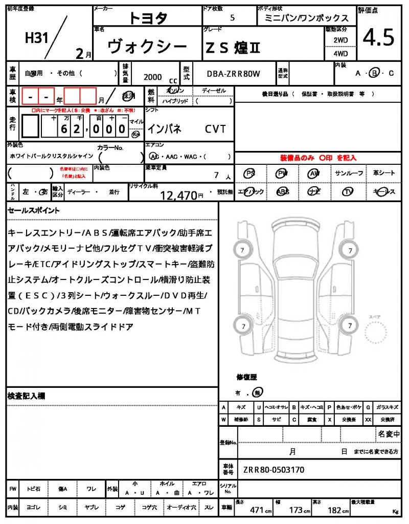 | VIN/Serial No. | ZRR80-0503170 |