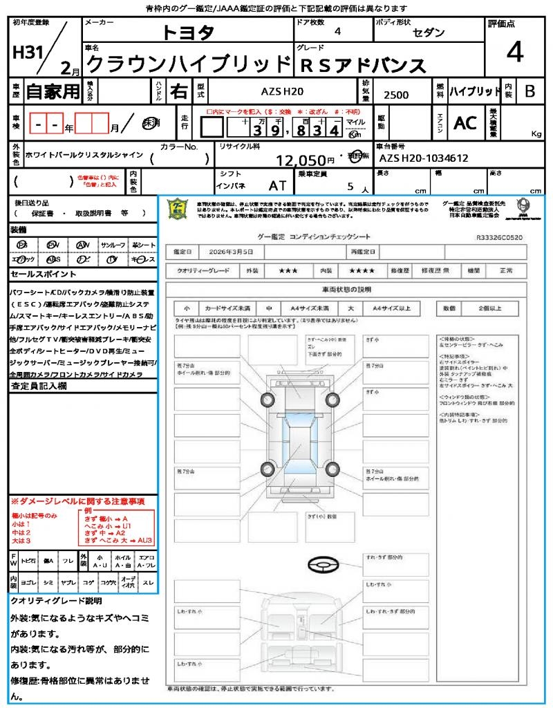 | VIN/Serial No. | AZSH20-1034612 |