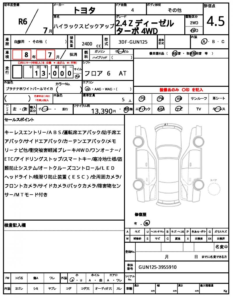 | VIN/Serial No. | GUN125-3955910 |