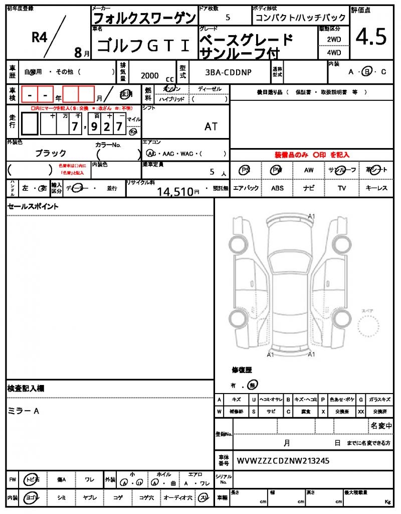 | VIN/Serial No. | WVWZZZCDZNW213245 |