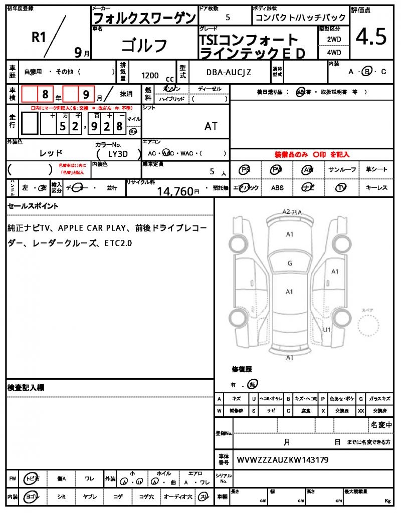 VIN/Serial No. WVWZZZAUZKW143179