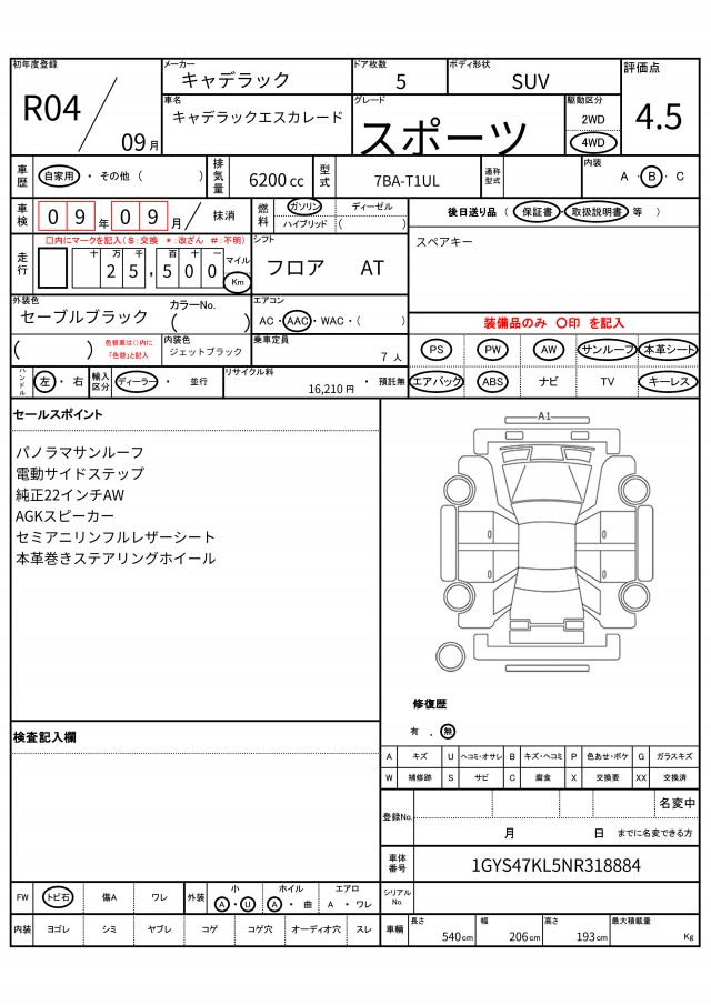 VIN/Serial No. 1GYS47KL5NR318884