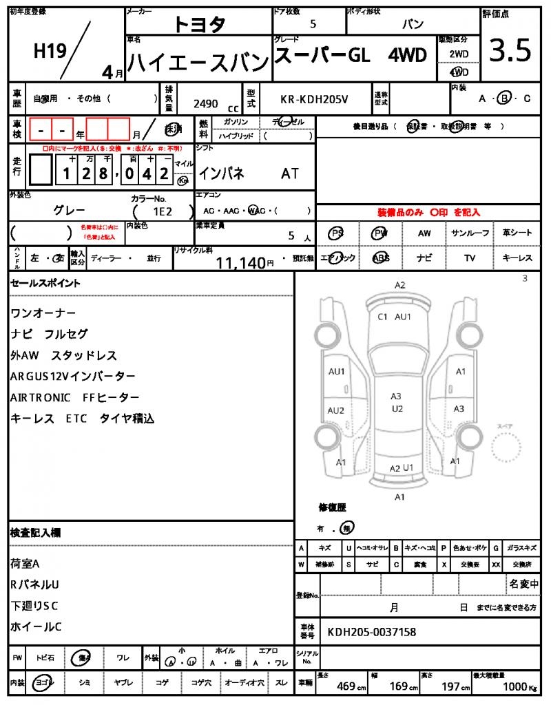 | VIN/Serial No. | KDH205-0037158 |