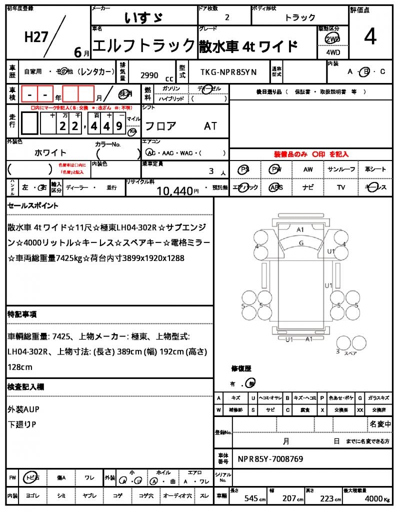 | VIN/Serial No. | NPR85Y-7008769 |