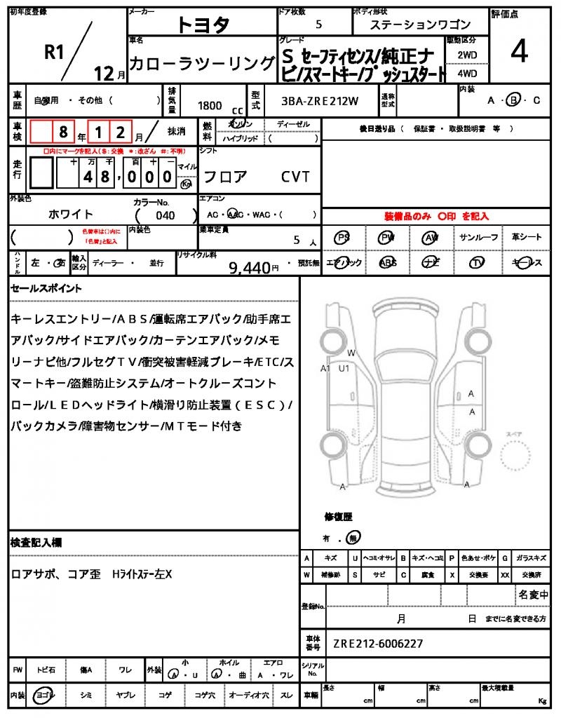 | VIN/Serial No. | ZRE212-6006227 |