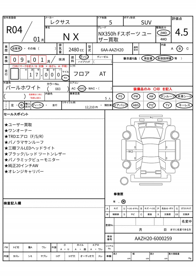 | VIN/Serial No. | AAZH20-6000259 |