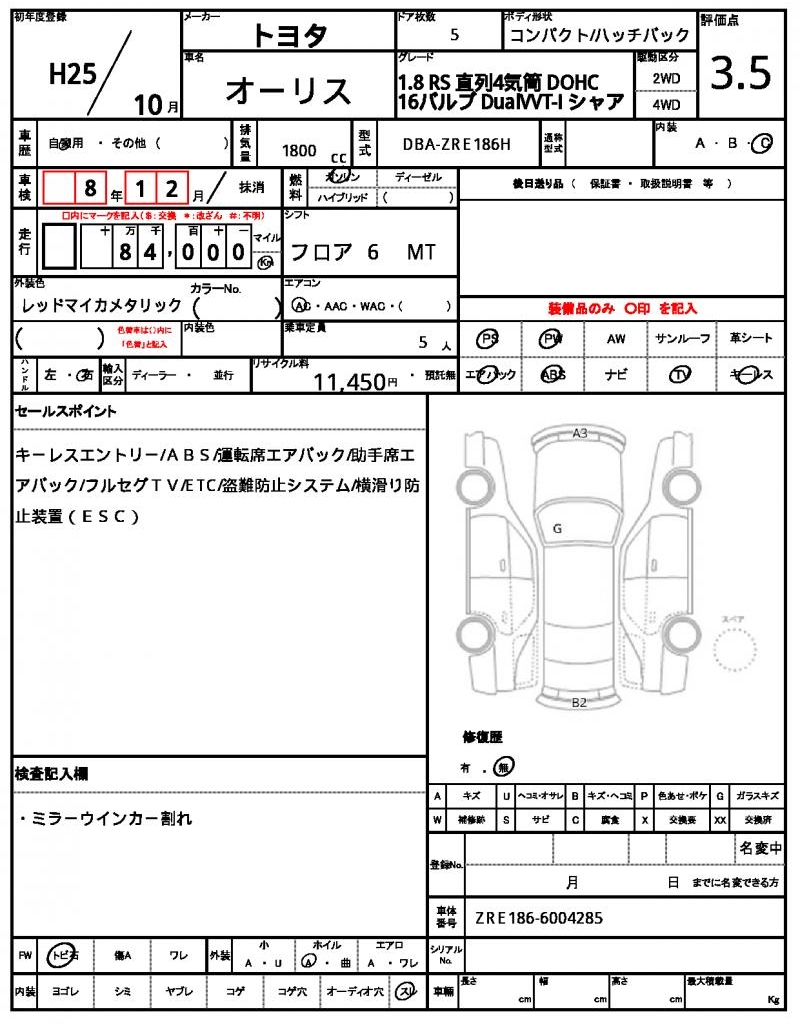 | VIN/Serial No. | ZRE186-6004285 |