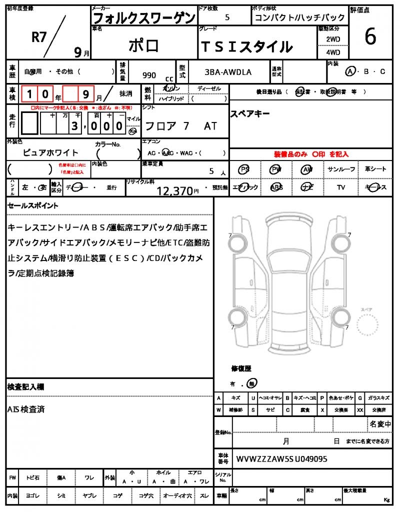 | VIN/Serial No. | WVWZZZAW5SU049095 |