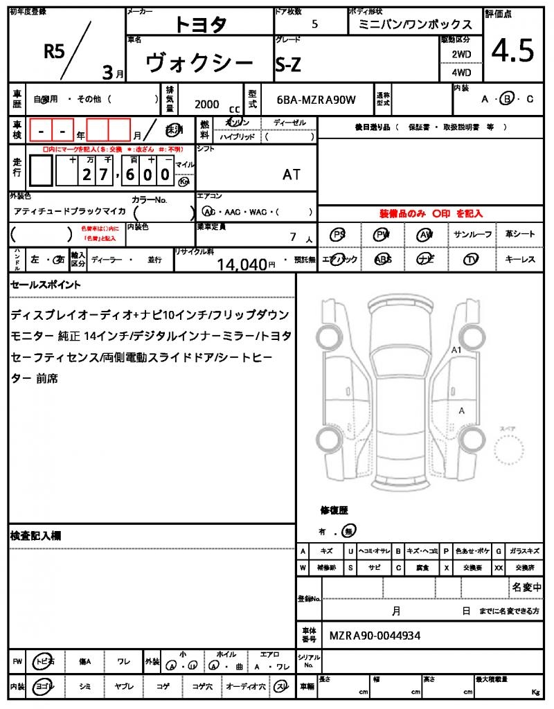 | VIN/Serial No. | MZRA90-0044934 |
