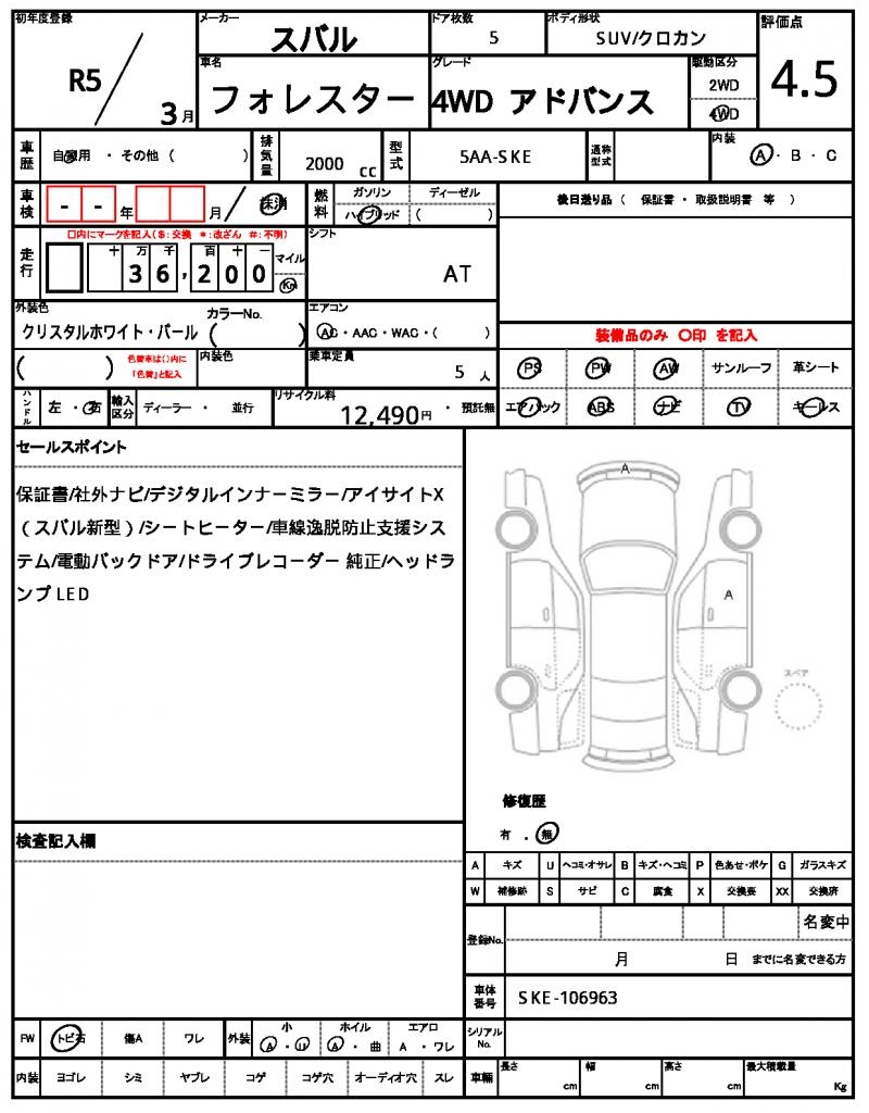 | Odometer | 36200km |