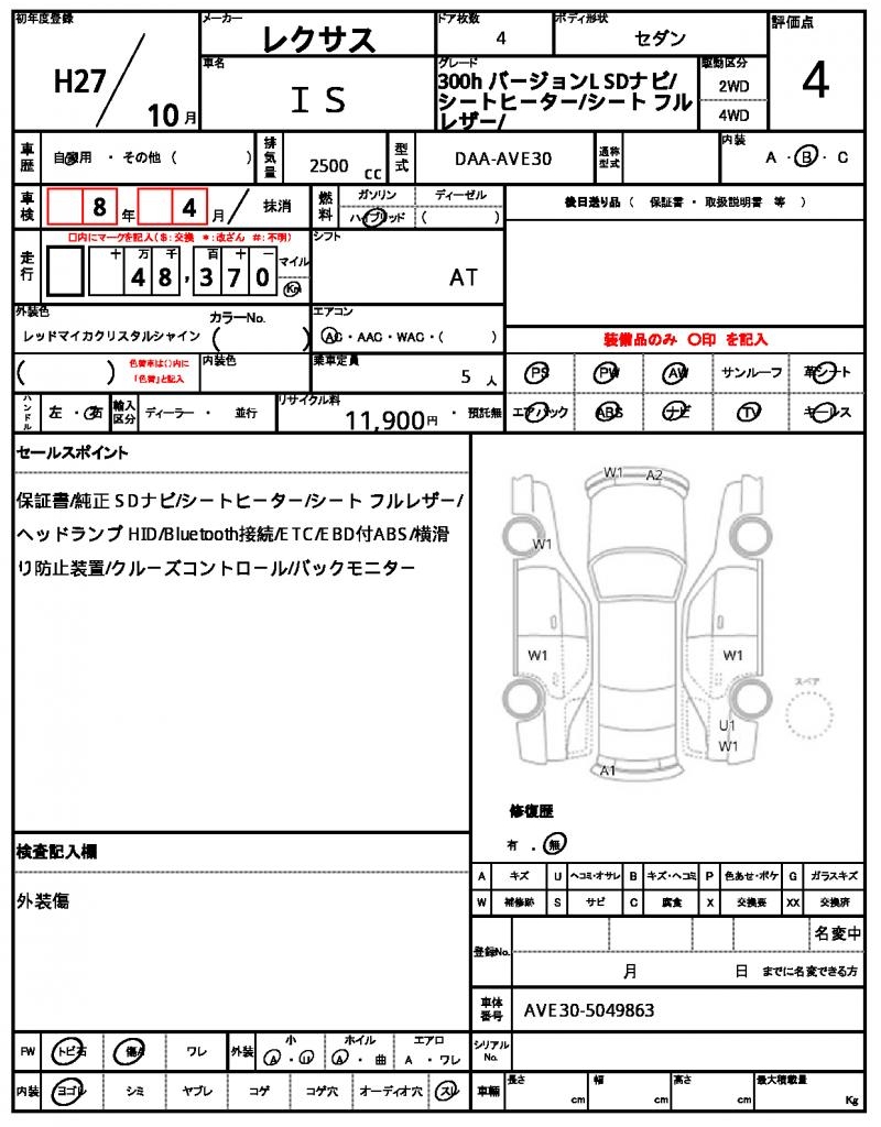 | VIN/Serial No. | AVE30-5049863 |