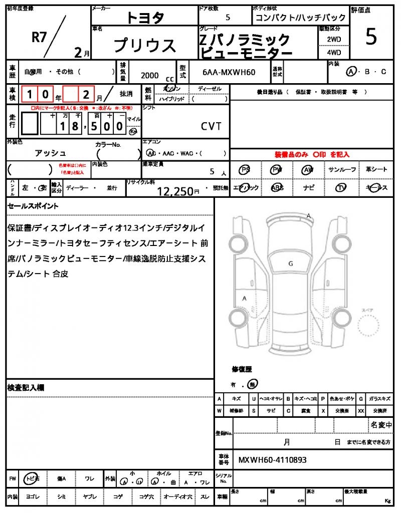 | VIN/Serial No. | MXWH60-4110893 |