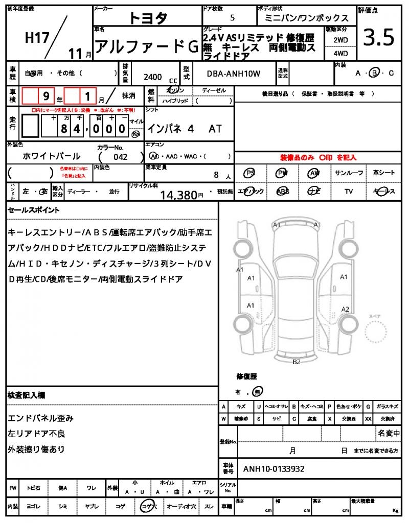 | VIN/Serial No. | ANH10-0133932 |