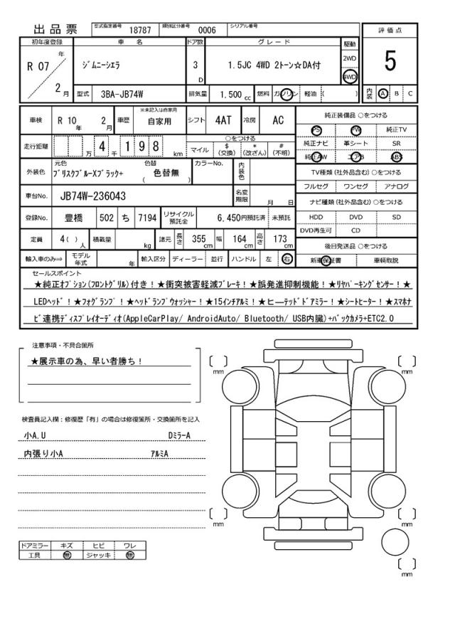 | Model code | 3BA-JB74W |