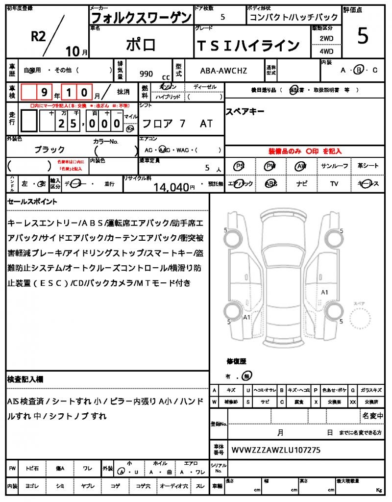 | VIN/Serial No. | WVWZZZAWZLU107275 |