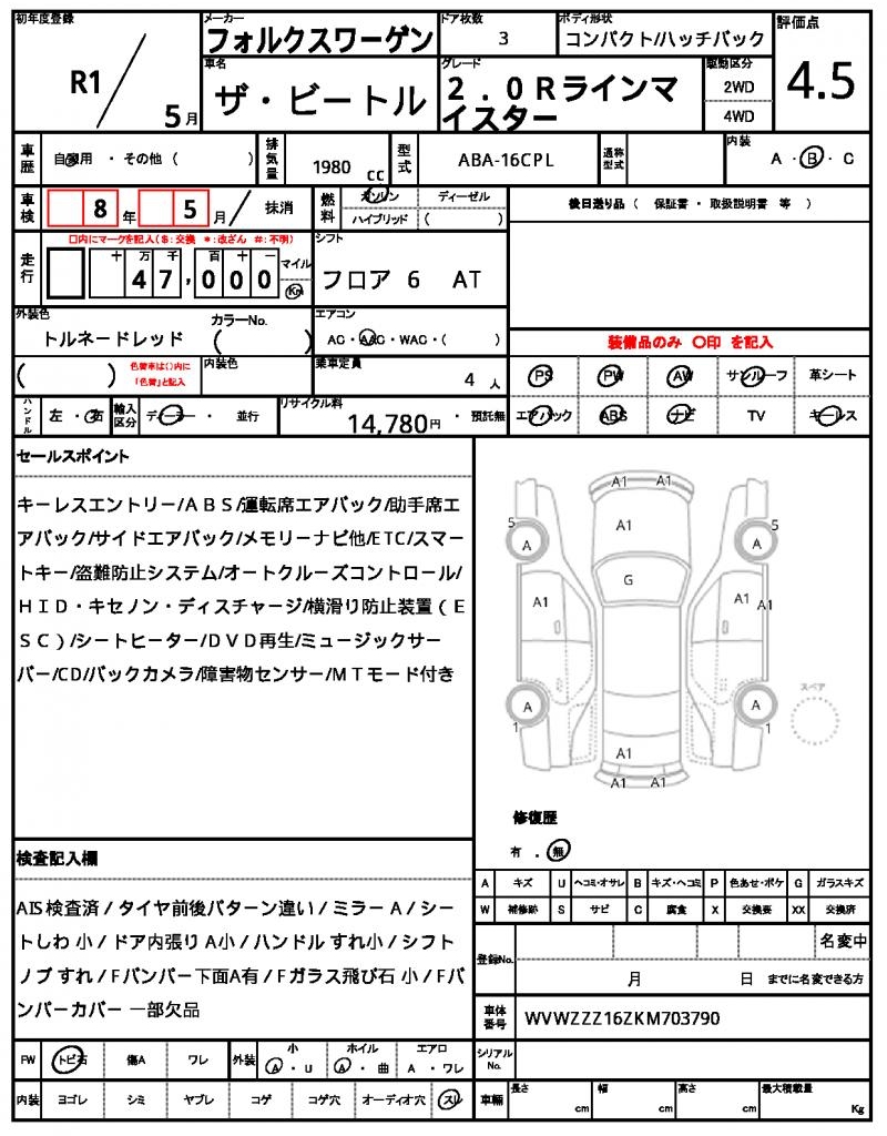 | VIN/Serial No. | WVWZZZ16ZKM703790 |