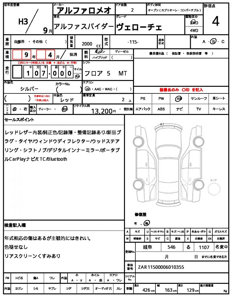 | VIN/Serial No. | ZAR11500006010355 |