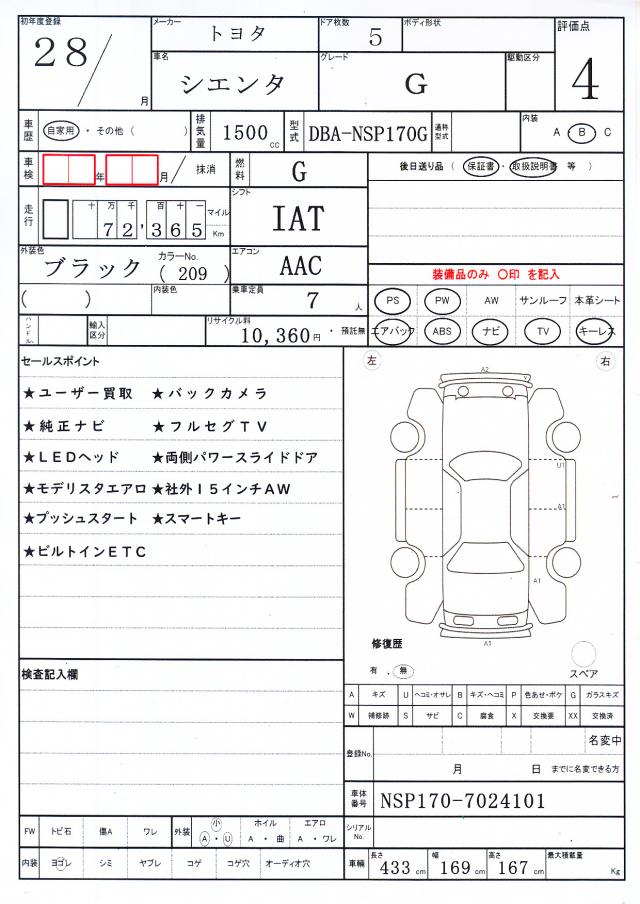 | VIN/Serial No. | NSP170-7024101 |